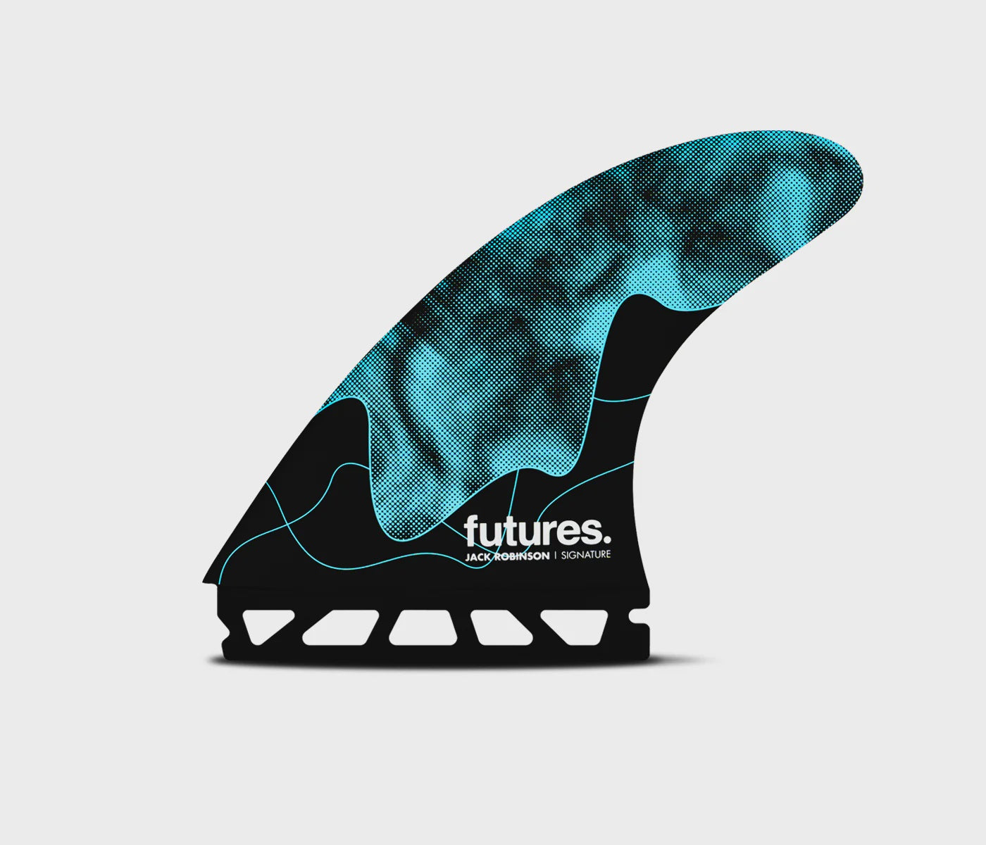 Jack Robinson's new signature thruster fin is a large size fin in the Rake template category. Developed to suit Jack's style of surfing above and below the lip, he has been putting it through the paces at some of the best waves in the world with incredible success. The centre fin is smaller than the side fins for increased manoeuvrability.